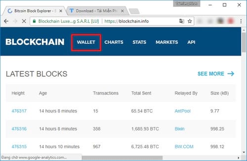Bước 1: Để tạo ví Bitcoin Blockchain trước tiên các bạn cần truy cập vào trang web Blockchain TẠI ĐÂY