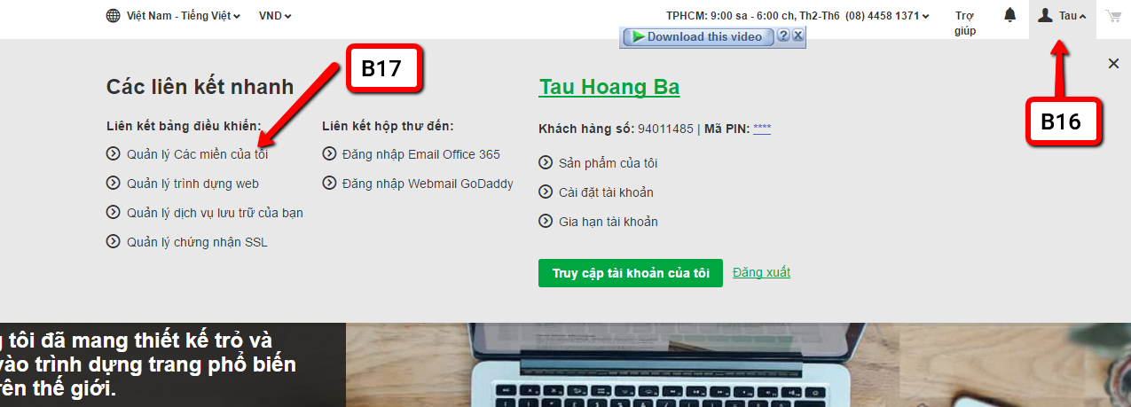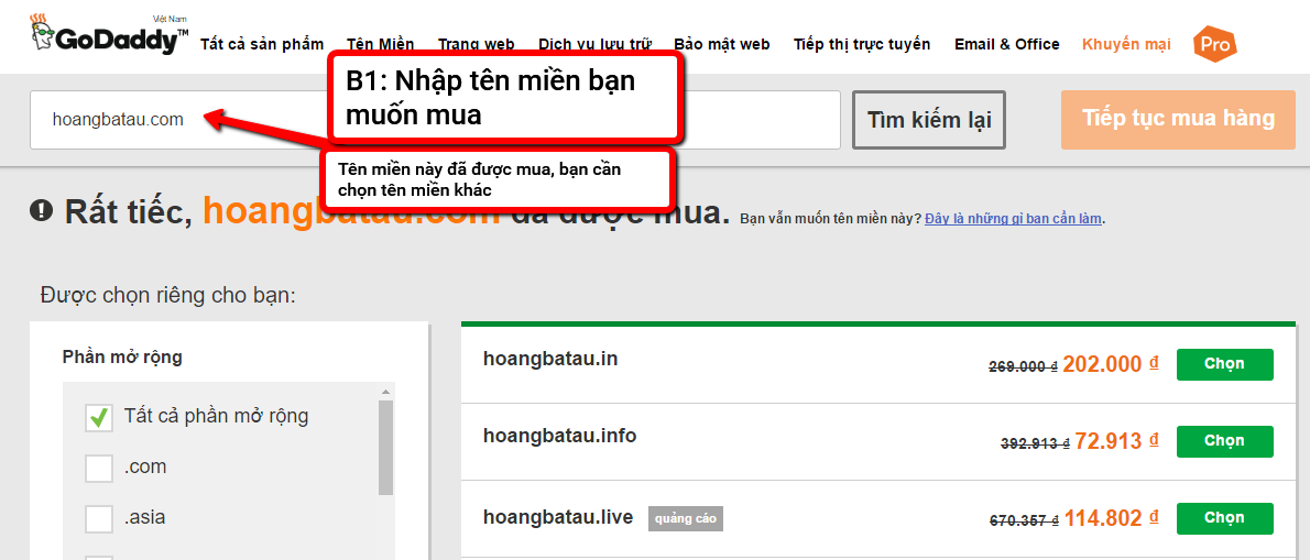Đầu tiên bạn cần truy cập vào trang Godaddy.com