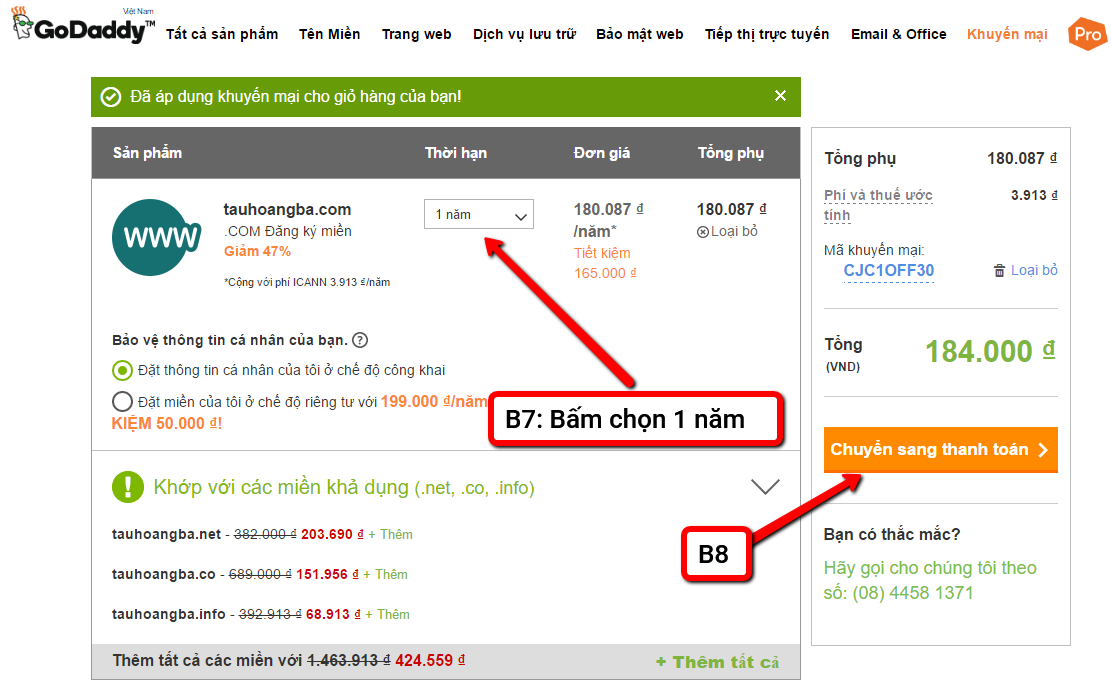 Godaddy là nhà cung cấp tên miền lớn nhất trên thế giới, tại đây luôn có nhiều ưu đãi mua tên miền giá rẻ, có nhiều đuôi tên miền như .info .xyz chỉ từ 1$ đến 2$ cho 1 năm sử dụng. Bài viết này hướng dẫn các bạn cách mua tên miền ở Godaddy với nhiều mã coupon khuyến mại tốt nhất.