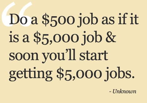 Ai đó đã nói rằng: “Hãy làm một công việc được trả $500 như thể bạn sẽ nhận được $5,000 đô từ nó, và bạn sẽ sớm có được công việc $5,000”. Tôi đã bị thuyêt phục bởi câu nói này và thực sự thay đổi phương châm làm việc của mình.